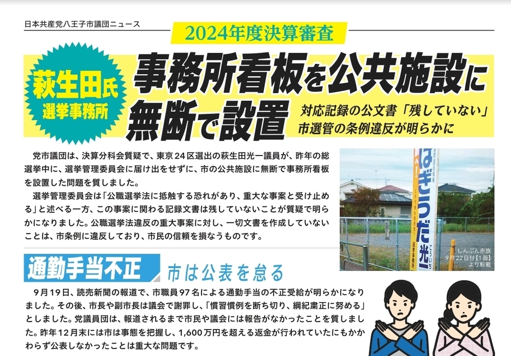 2025年10月28日 / 最終更新日時 : 2025年10月28日 hachioji_admin 望月しょうへい 2025年第3回定例会本会議|2024年度決算に対する反対討論|2025年10月8日 望月しょうへい ただいま議題になっております2024年度八王子市一般会計及び各特別会計並びに公営企業会計の決算認定についての諸議案に対し、日本共産党八王子市議会議員団を代表して、反対の討論を行います。 2024年度の市民生活は、物価高騰 […]