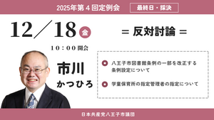 それでは、第163号議案および第164号議案、財産の減額貸付について、日本共産党八王子市議会議員団を代表し、反対討論を行います。